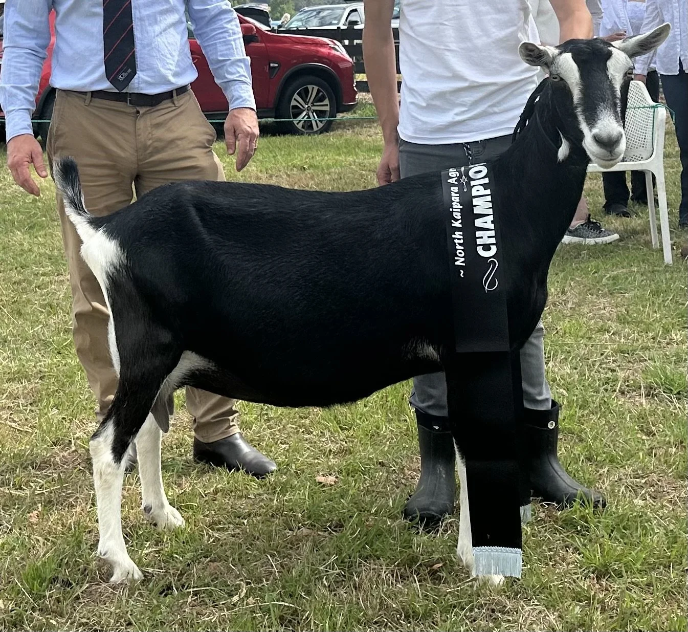 Tall and graceful with smoothly blended body exhibiting pronounced double dairy wedge. Fine but not inclined to weakness. Showing femininity in does and masculinity in bucks.